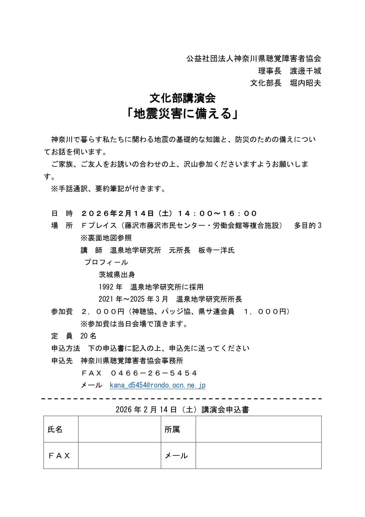 2/14文化部講演会「地震災害に備える」のお知らせ